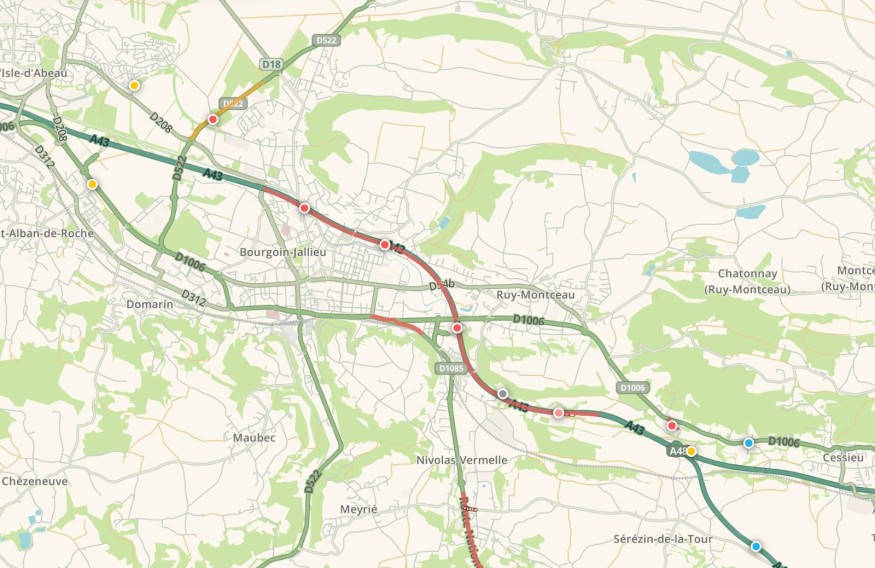 Selon un premier bilan des pompiers, parmi les trois personnes dans les véhicules, l’une d’entre elle est blessée. Un accident qui cause des bouchons de 5km dès Bourgoin-Jallieu.
