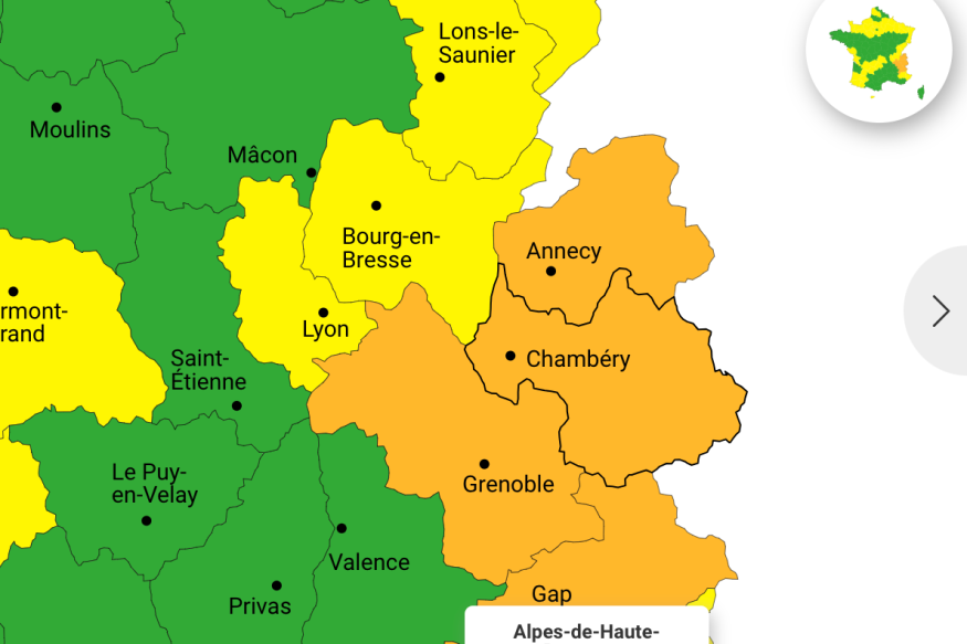 Beaucoup de pluie attendue ce jeudi 30 novembre dans les Alpes. Météo France vient de placer l’Isère, la Savoie, la Haute-Savoie et les Hautes-Alpes en vigilance orange pluie-inondations.