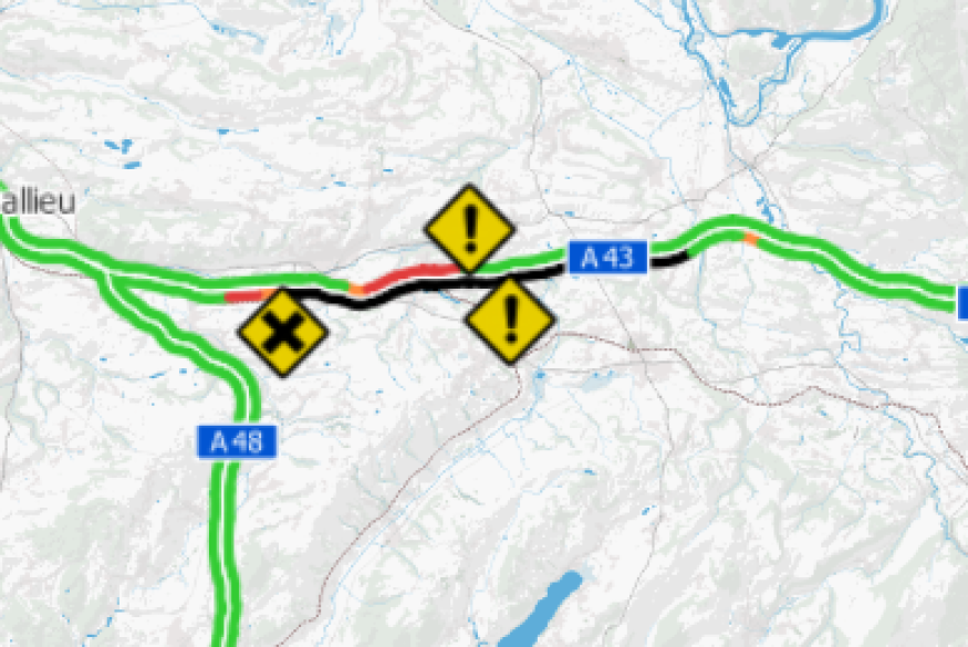 Un bus est en feu sur l’A43 à hauteur de Saint Didier de la Tour en direction de Chambéry.