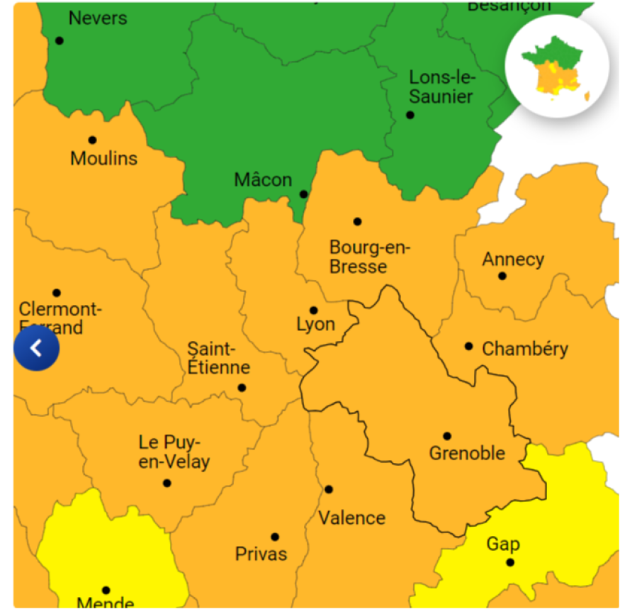 L'Isère sera placée en vigilance orange canicule à partir de ce lundi à midi. Le département fait partie des 39 concernés demain. Ils se trouvent en majorité dans la moitié sud de l'Hexagone. De la Vendée aux Alpes-Maritimes. Tous les départements de la région Auvergne-Rhône-Alpes sont également placés en alerte.
