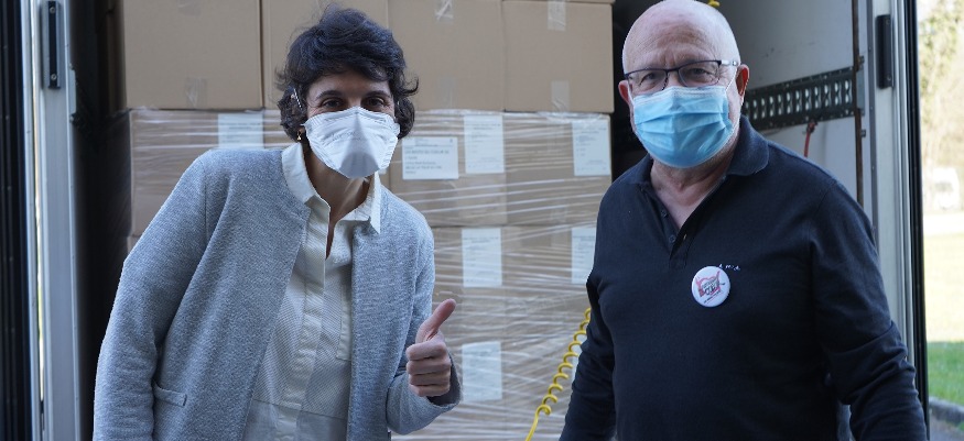 Ce Mercredi 31 Mars, après une livraison à la Tour du Pin pour les Restos du Cœur et le Secours Populaire, le collectif franco-libanais Solidarité Lyon Beyrouth, qui œuvre pour le Liban, mais aussi l'antenne lyonnaise de Pharmasolidaires ont reçu des masques FFP2 pour protéger leurs bénévoles et bénéficiaires.