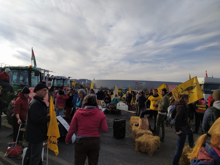 L'autoroute A7 est aussi bloquée par les agriculteurs dans le sens nord/sud au niveau de l'échangeur n°10 de Condrieu depuis 15h30 pour une durée indéterminée.