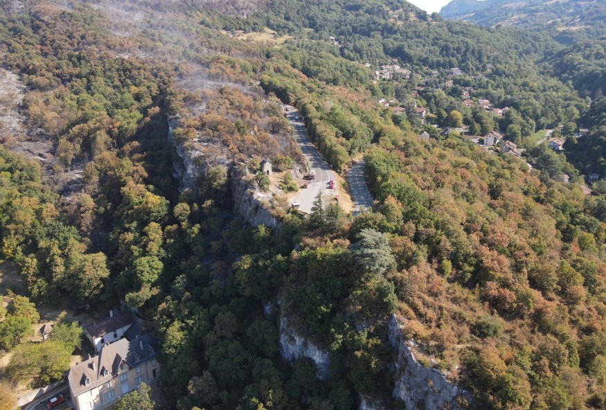 [MàJ 08/08/22 - 11h00] L'incendie est toujours en cours alors que le vent commence à se lever. Les routes départementales 520A entre Voreppe et Pommiers-la-Placette et 1075 entre La Buisse et Voreppe sont coupées à la circulation. Les Canadairs ne sont toujours pas revenus sur place mais eux hélicoptères bombardiers d'eau continuent leur mission sur les zones les plus escarpées.