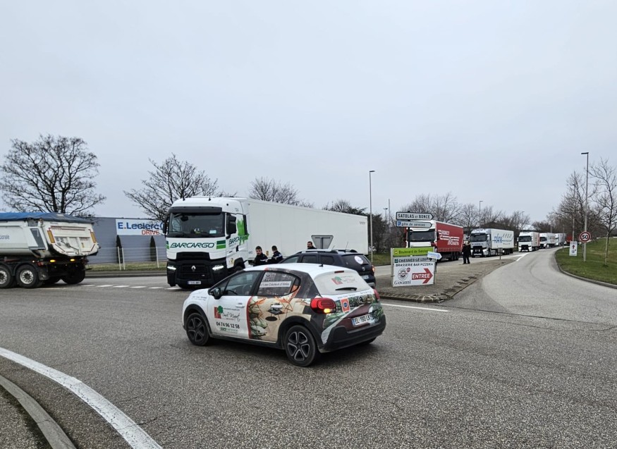 [Mise à jour 05/02/24 10h15] Les camions bloquent depuis 9h30 ce matin plusieurs ronds-points stratégiques de la zone logistique de Chesnes.