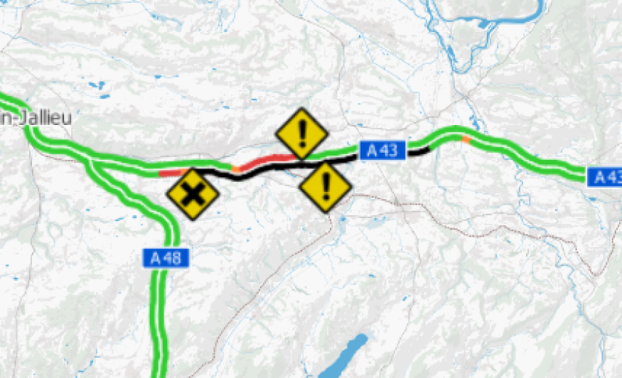 Un bus est en feu sur l’A43 à hauteur de Saint Didier de la Tour en direction de Chambéry.