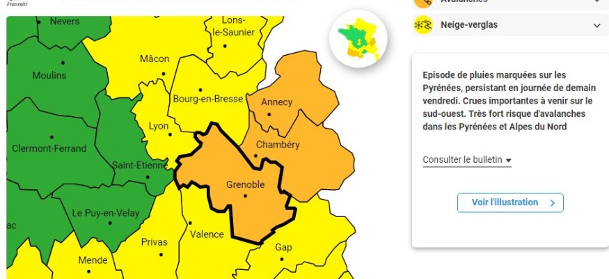 Il atteindra dès ce vendredi matin un niveau fort de 4 sur 5 en Isère et en Savoie ; à très fort de 5 sur 5 sur la Haute-Savoie.