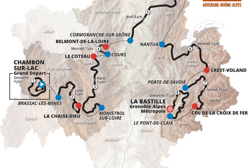 La grande arrivée aura lieu à la Bastille de Grenoble le 11 juin prochain. Les coureurs partiront de Pont-de-Claix avant de rejoindre les hauteurs de la Capitale des Alpes. Une étape de 152 km qui passera par Saint-Martin-d’Uriage, Goncelin, Pontcharra, le Col du Granier ou encore le Col de Porte.