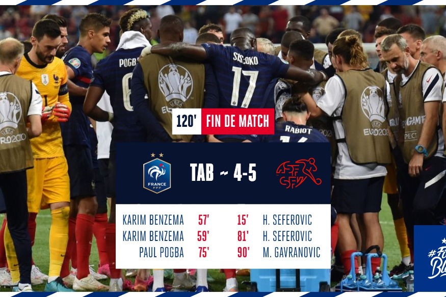 Enorme déception et contre-performance pour les champions du monde en titre. L’équipe de France quitte l’Euro dès les huitièmes de finale. Les Bleus ont été éliminés hier soir, lundi 28 juin, par la Suisse (3-3, 5 t.a.b à 4). Pourtant, on y a tous cru devant notre télévision…