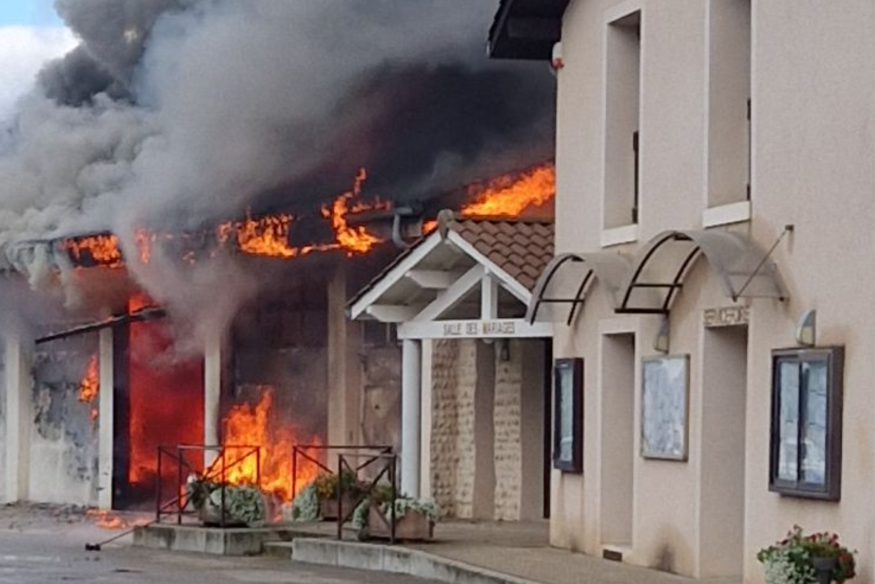 L'incendie s'est déclaré dans un bâtiment agricole d’environ 200 m2 juste à côté de la mairie. Selon nos éléments, deux bouteilles de gaz à moitié vide ont été trouvées à l’intérieur.