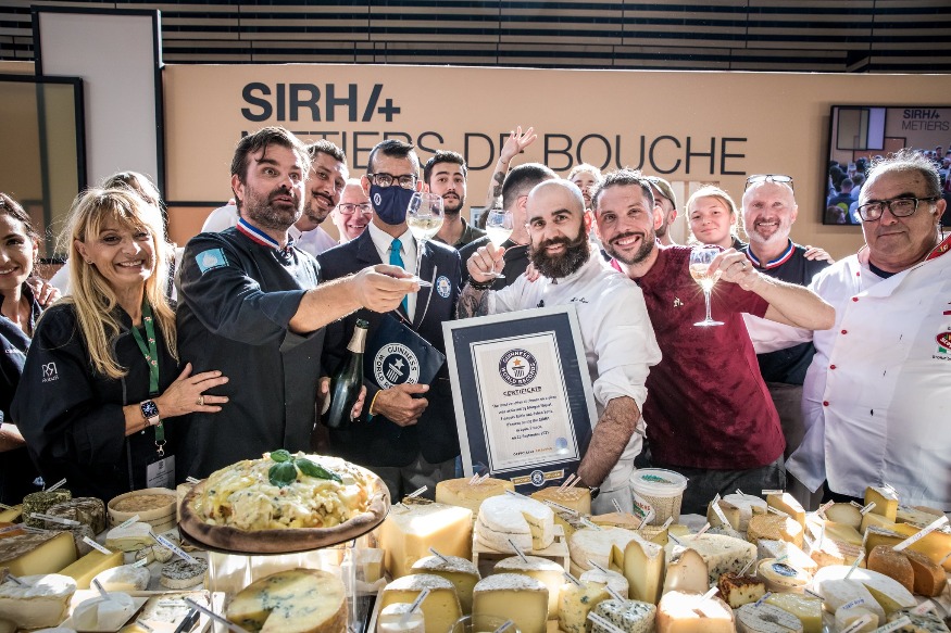 Un record plutôt odorant a eu lieu ce samedi 25 septembre au Sirha, le Salon International de la Restauration, de l'Hôtellerie et de l'Alimentation à Eurexpo à Lyon. Les chefs François Robin et Julien Serri ont été épaulés du Youtubeur Morgan VS pour réaliser le record du monde de la pizza au plus grand nombre de fromages.
