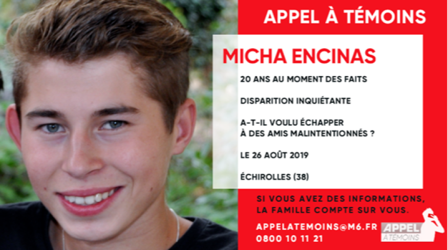 Micha Encinas, 20 ans, est porté disparu depuis le 26 août 2019. Le téléphone de ce jeune homme a borné pour la dernière fois à Echirolles et n’a plus donné de nouvelles depuis. Ce soir, lundi 4 mars, sur M6, l’émission « Appel à témoins » veut relancer l’enquête. Radio ISA revient sur cette affaire.