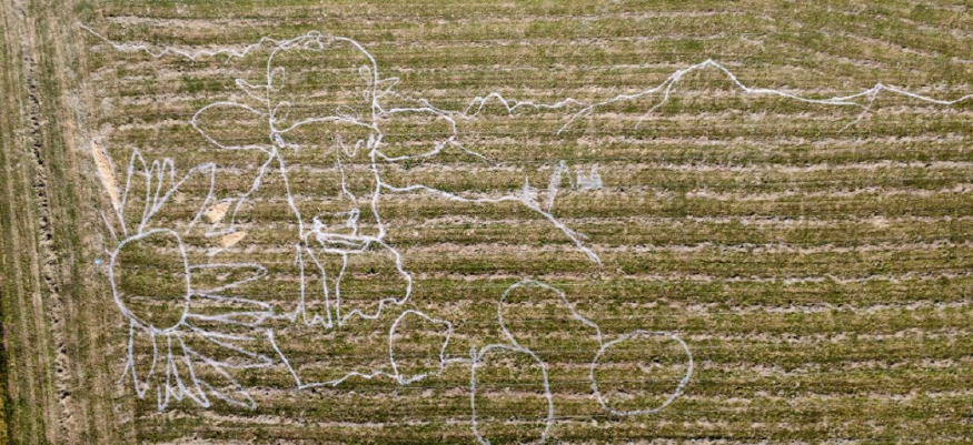Et pour ça, ils ont fait appel à Anthony, un artiste peintre du Pas-de-Calais pour réaliser une oeuvre de 5 000 m² sur un champ, à Izeaux, avec une vache mais pas que, comme nous l’explique Anthony, lui-même :