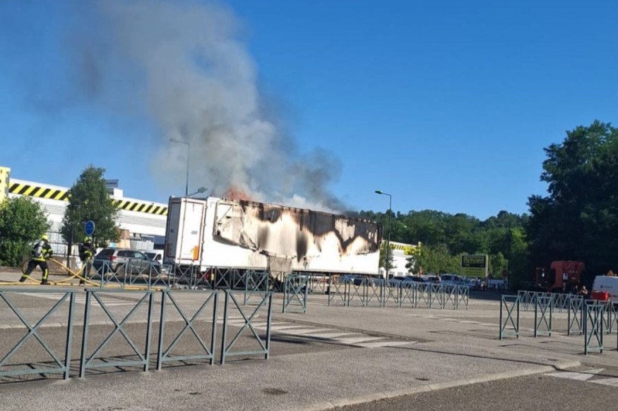 Un incendie s'est déclenché ce lundi 30 juin au matin, rue de la Bourbre à Saint-Jean-de-Soudain. C'est un poids lourd qui a pris feu alors qu'il se trouvait près d'un magasin de bricolage, plus précisément sur le parking du gymnase des Dauphins.