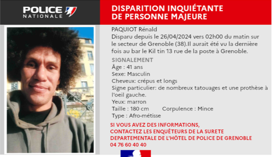 Grenoble : disparition inquiétante de Rénald Paquiot