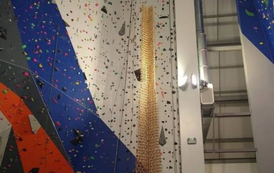 Après plusieurs semaines d’entraînements, ils ont réussi ce week-end à Mulhouse, dans la plus haute salle d’escalade de France, à empiler ces petits bouts de bois à 18,76 mètres au-dessus du sol. C’est très précis, le précédent record du monde, établi à Lyon en 2016, était de 18,40 mètres.