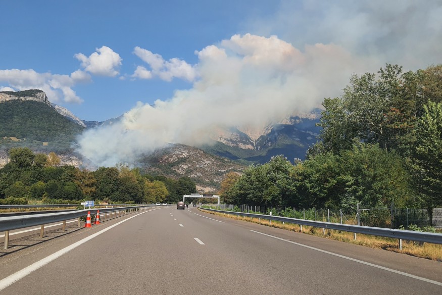 Les flammes impressionnantes sont bien visibles depuis l'arrivée sur Grenoble par l'A49.