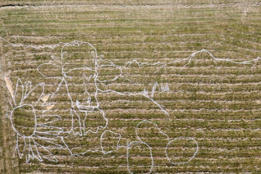 Et pour ça, ils ont fait appel à Anthony, un artiste peintre du Pas-de-Calais pour réaliser une oeuvre de 5 000 m² sur un champ, à Izeaux, avec une vache mais pas que, comme nous l’explique Anthony, lui-même :
