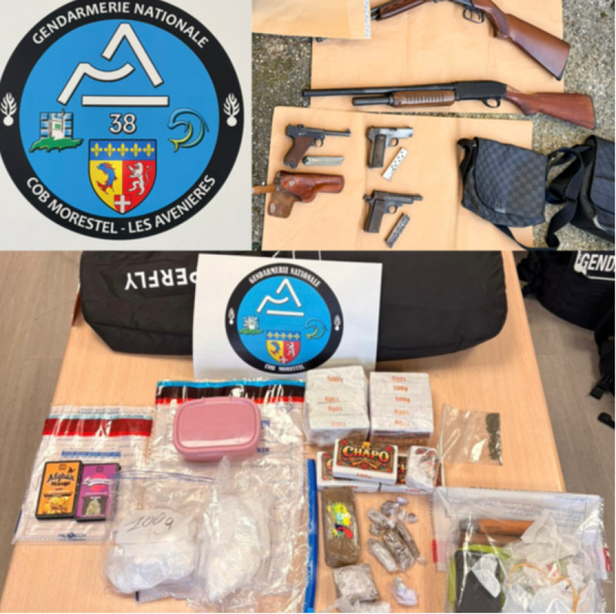 Un homme qui a proféré des menaces sur son ex-compagne, a été interpellé le samedi 7 mars par les gendarmes de Morestel et de la Tour du Pin avec l'appui de la PSIG et ils ont découvert, en perquisitionnant son logement, plus d’un kilo de résine de cannabis, près de 300 grammes de cocaïne et cinq armes à feu.
